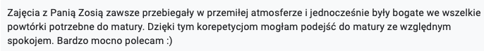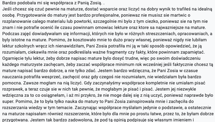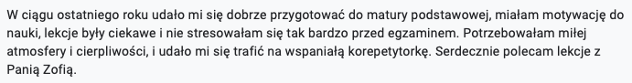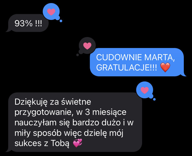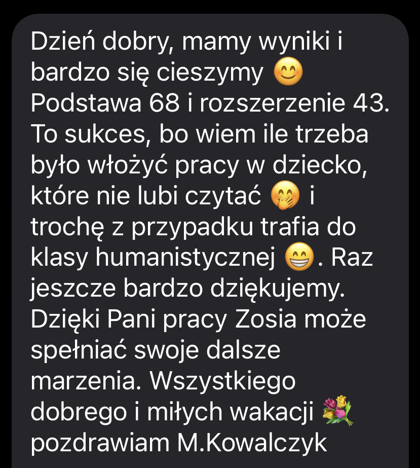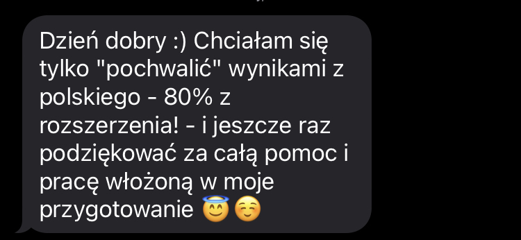 Wierzę, że podejście to przynosi owocne efekty, czego dowodem są opinię i wyniki moich byłych uczniów, z którymi można zapoznać się poniżej 🙂